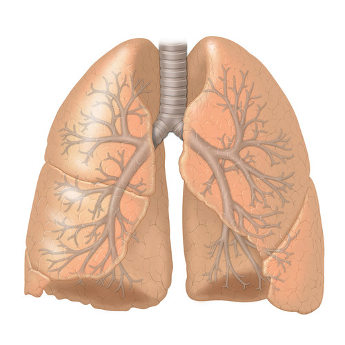 Réalisation d’une série d'illustrations anatomiques montrant les effets de la broncho-pneumopathie chronique obstructive (BPCO) sur l'appareil respiratoire, notamment les bronches et les alvéoles pulmonaires. Sur l'illustration de poumons on peut voir en transparence la partie inférieure de la trachée et de l'arbre bronchique. Dans les autres illustrations on peut voir en coupe les bronchioles et sacs alvéolaires et l'effet de la BPCO sur ces structures comme une déformations des alvéoles pulmonaires, une dégradation de la vascularisation et une obstruction des bronchioles par accumulation de sécrétion et par inflammation des tissus.