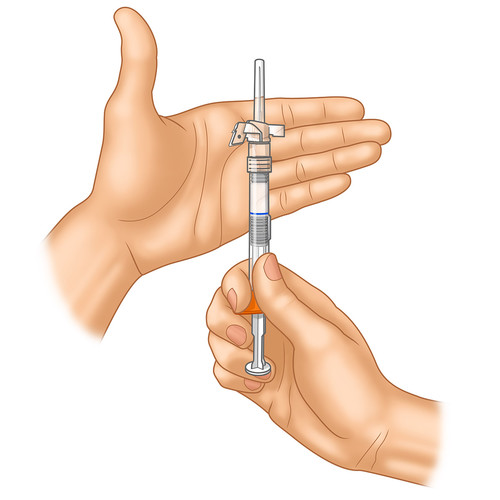 Réalisation d'illustrations de reconstitution de seringue et produit injectable ainsi que de protocole de sécurisation de ces seringues après usage.